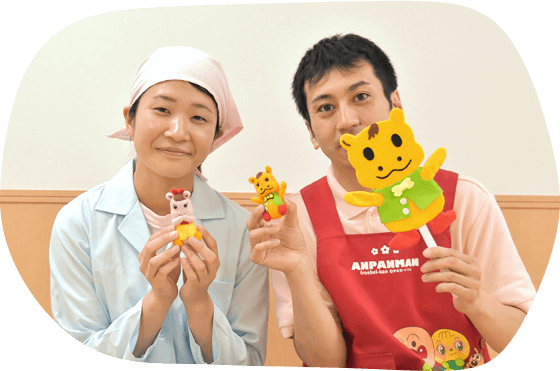 また、プランターでの野菜の栽培、畑でイモ堀を行い、土との触れ合いから食べ物の大切さを肌で感じるクッキング保育の開催を行っております。お子さまの毎日の食事が楽しくなるのはもちろんのこと、保護者の方にレシピの配布や、試食会を開催するなどして、ご家庭での「食育」の参考になるような活動も行っております。年に2回、各1ヶ月間にわたって、「夏の海の幸」「世界の料理」などのテーマを設けた「給食フェア」も開催しております。