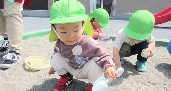 千葉誉田雲母保育園のスローガン見たい!知りたい!やってみたい! ~のびのびとほがらかに~