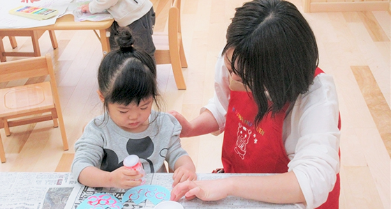 元気いっぱいな子、絵本が大好きな子、おしゃべり好きな子などそれぞれですが、保育園では友だちと関わりながら、のびのびと過ごしています。私たちは、子どもたちがそれぞれの個性を活かし、世界を広げていけるようサポートしていきます。