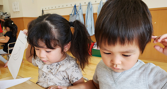 何かをできるようになることは、とても嬉しいことですが、できる・できないではない「自分でやってみたい」という意欲や「どうしたらできるかな」と考える力、周りに困っている人がいる時に手を差し伸べられる気持ちを育む保育をしています。