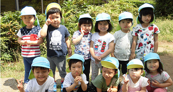 自然豊かな緑が多く、近くには広い公園もあり、子どもたちも季節を通じて花や虫とのふれあいながら活動しています。