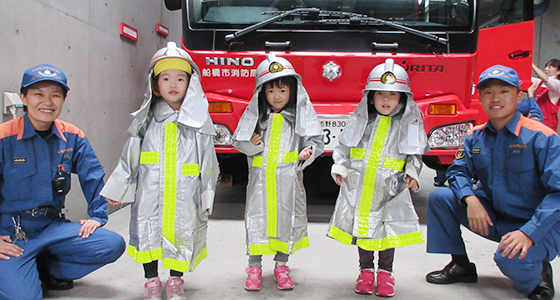 消防署が隣接していて、「今日は消防車は、出動中だったよ。」など、子どもたちはお話してくれます。