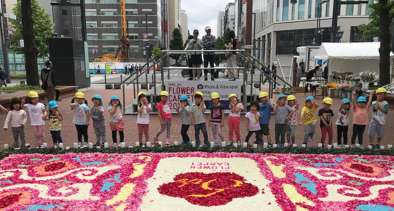 大通駅から徒歩3分。札幌のシンボル、時計台のすぐ隣のビルの中にあります。時計台が園庭と言えるほどの距離です。札幌駅周辺などにお勤めの保護者の方にも利用しやすい立地になっています。保育室内はビル内とは感じさせない空間づくりがされており、子どもたちも室内でも元気いっぱいに体を動かしています。