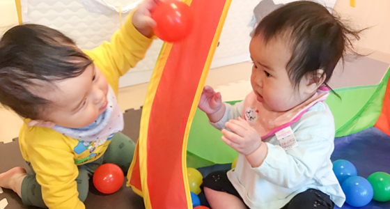 長時間過ごす保育室は、保育者が心を込めて作った手作り玩具をはじめ、子ども達の発達に合った環境を用意しています。一緒に過ごしながら時にはそばで見守ったり、時にはリードして遊んだりする中で、遊びを通して様々なことを経験し、学ぶ機会を得られるように心掛けていきます。