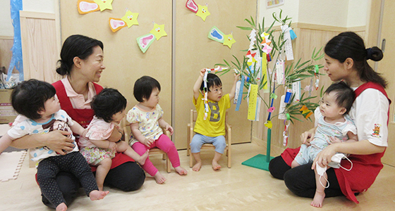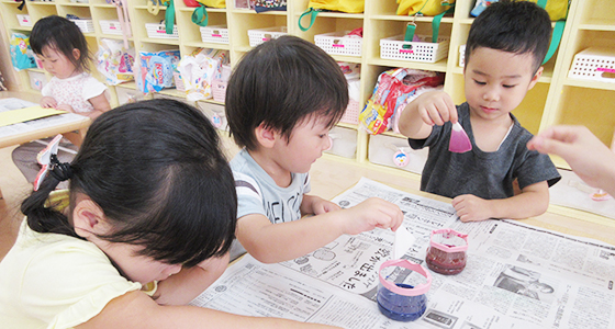 保育園でお預かりするお子様は、各ご家庭の大切な宝です。そんな宝が集まる場所、そこが保育園です。宝石の原石である子ども達は、保育園生活の中で様々な経験をし、磨かれ、自ら輝いていきます。各々が好きな事を見つけ、その芽を伸ばして成長し、自分色に輝く事の出来る環境を整える場でありたいと願い、子ども達に接しています。子どもの気づきやつぶやきを大切に拾い集め、何に興味関心を持っているのかを見出し、一緒に笑ったり、時には泣いたりしながら成長を見守っています。