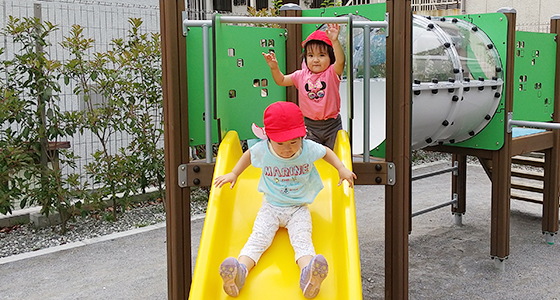 周辺には公園が点在、遊具も充実しており、のびのび楽しめます。生活しやすい便利さに加えて、自然にふれ合える環境で、毎日散歩で体を充分動かしています。地域の方々にも声をかけられ、挨拶を交わして、毎日元気いっぱいの子どもたちです。