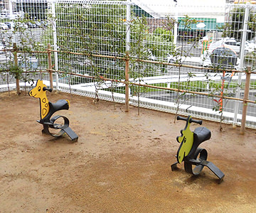 高台に位置するため、園庭からは広々とした景色が広がり、まるで屋上にいるかのような空間を味わいながら、太陽の光をいっぱい浴びて元気に過ごしています。地下鉄も見えるので、子ども達は大喜びです。