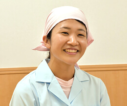 - 栄養士として、毎日の調理や献立作成、食育に関する行事の企画立案や給食だよりの発行などを行っています。また、食育専用の連絡帳である「栄養ノート」を通して、保護者の方とやりとりさせていただくことも大事な仕事です。雲母保育園では、栄養士も子どもたちの保育にあたっています。私は雲母保育園で働くうちに、子どものことをもっと深く知りたいと思うようになり昨年保育士免許も取得しました。