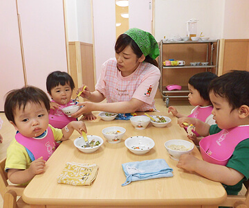 - 保育園や集団生活に慣れないお子さんの場合、量をなかなか食べられないというケースはよくあります。そういった際には、担任の先生と話し合ったり、保護者の方にご家庭での様子を伺ったりしながら試行錯誤を重ねています。「おいしい」と言いながら食べてもらえたときにはもう嬉しくて、栄養士、保育士一緒になって喜んでいます。(笑)